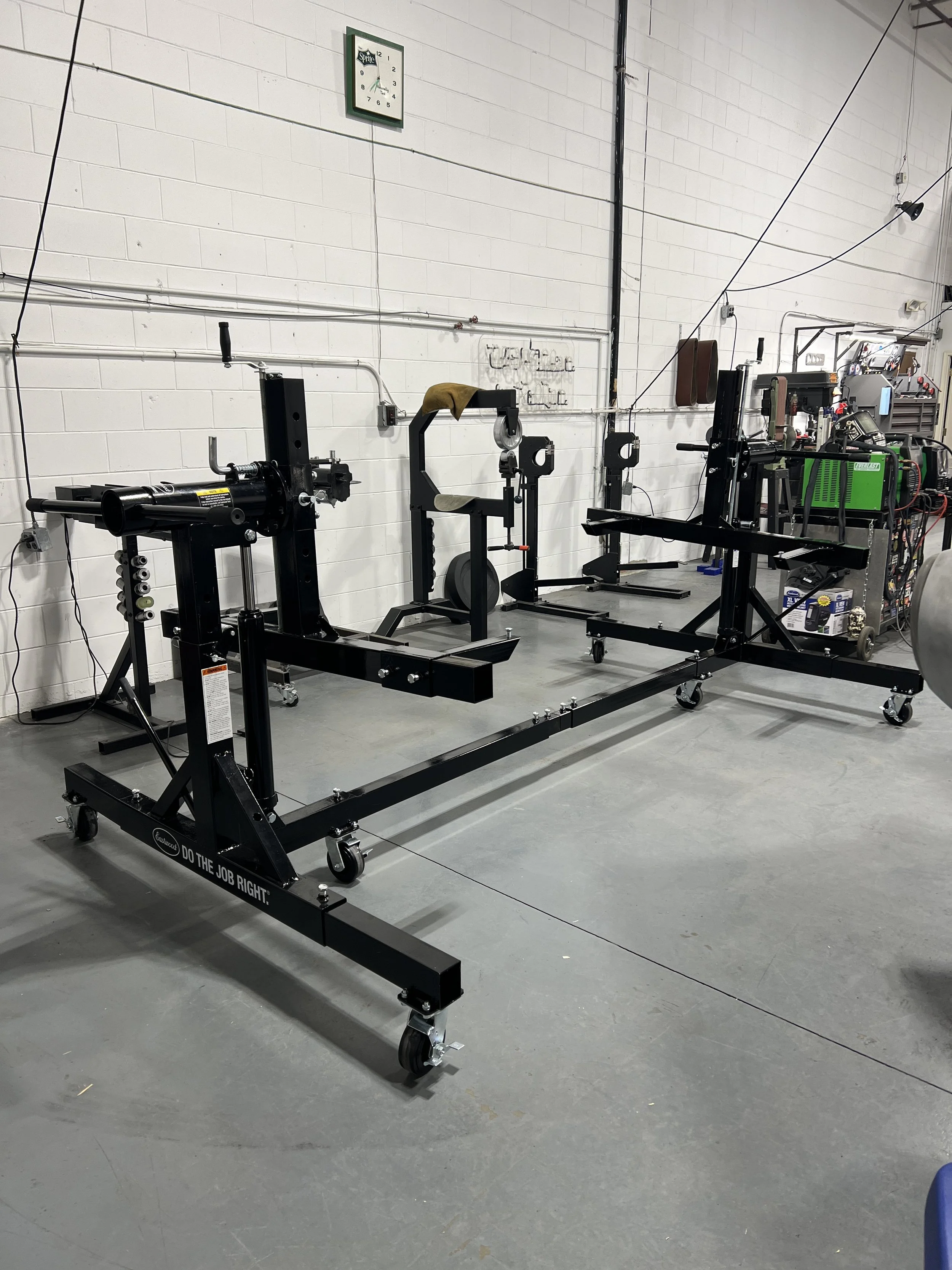 We just took delivery of our brand new 3,000lbs Eastwood auto rotisserie! Not one inch of the clients car’s go unfinished. A critical tool for any restoration / chassis shop. This enables us to rotate the cars to any angle needed whether it be for rust repairs on a floor pan, applying fresh seam sealer in all the factory locations, or having the underside of a body or chassis painted.